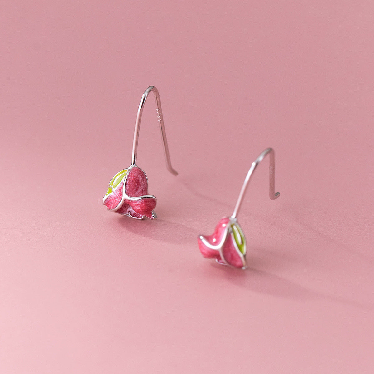 Gentle Drip Glazed Blooming Epoxy Tulip Ear Hook Wind Mori Sweet